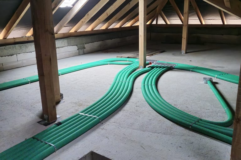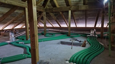 Maksymalna efektywność energetyczna, profesjonalna izolacja kanałów na nieogrzewanych poddaszach, eliminująca straty ciepła i kondensację pary.